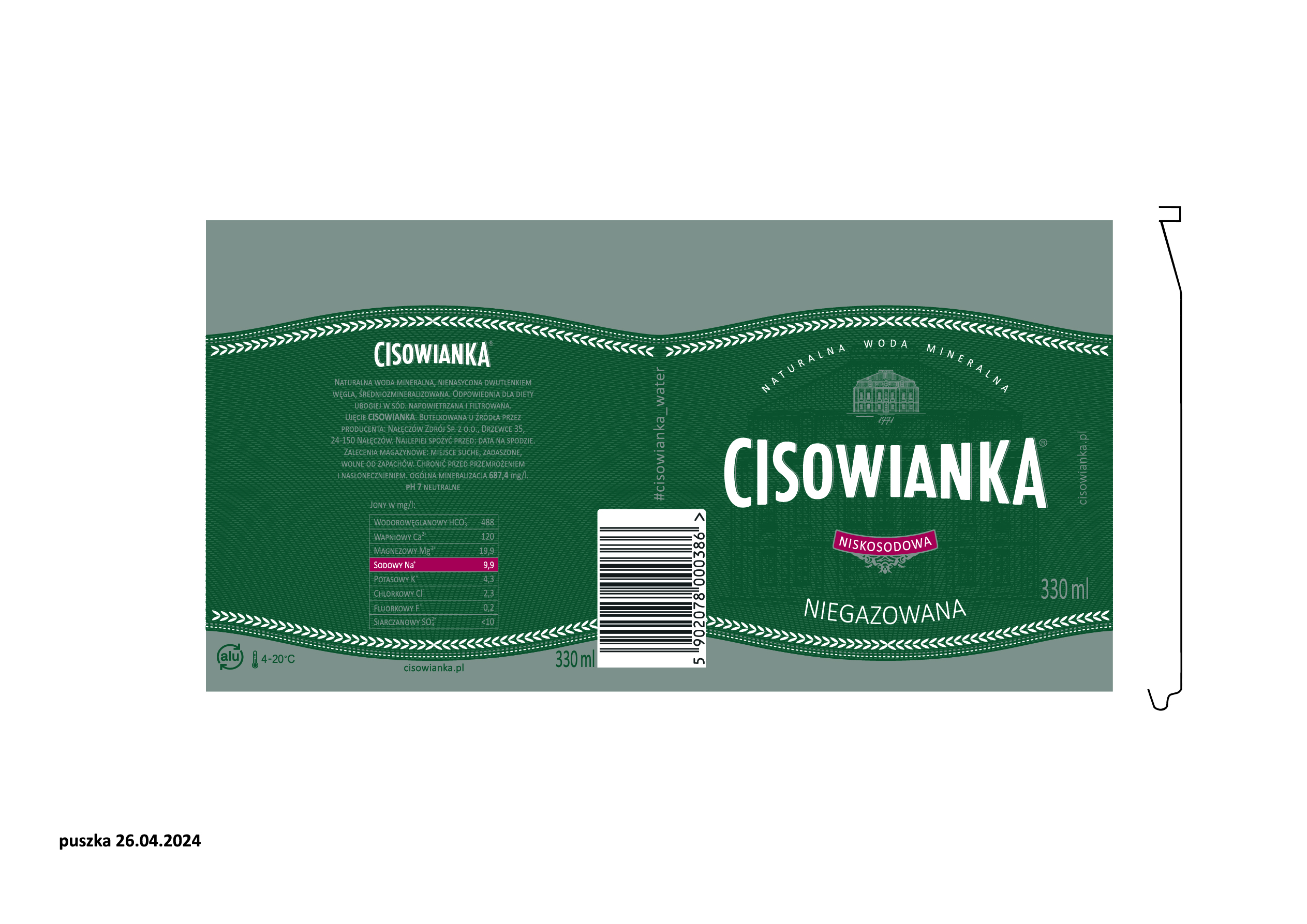 woda mineralna, nienasycona dwutlenkiem węgla pochodzenia , średniozmineralizowana. Odpowiednia dla diety ubogiej w sód. Poddawana procesowi napowietrzania i filtracji. Wydobywana z ujęcia Cisowianka Drzewce k./Nałęczowa.